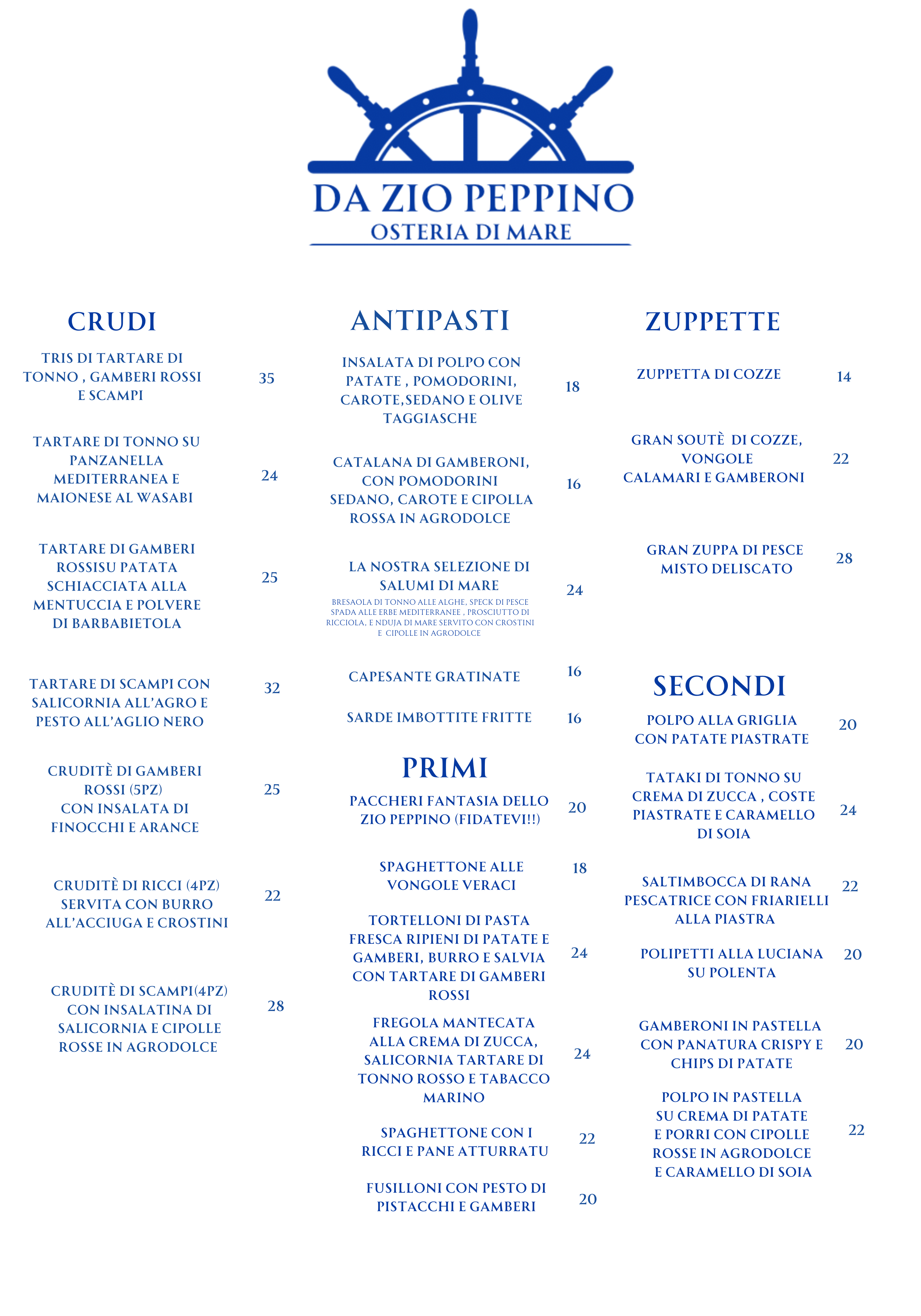 Qui troverai piatti a base di pesce preparati con cura , amore ed estro direttamente da zio Peppino.